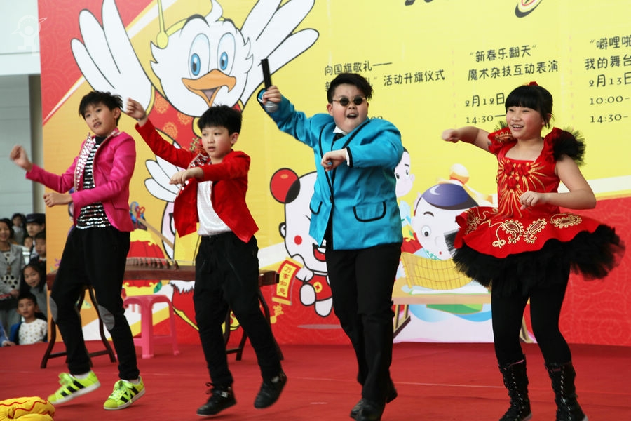 内容:由舞蹈教师编排简单动作,现场教孩子跳“金蛇style”舞蹈,可现场挑选孩子上台PK或全场同时学跳。以欢快的舞蹈欢庆蛇年的到来。该项目在“噼哩啪啦过大年,我的舞台我做主”少儿才艺嘉年华活动中穿插进行。