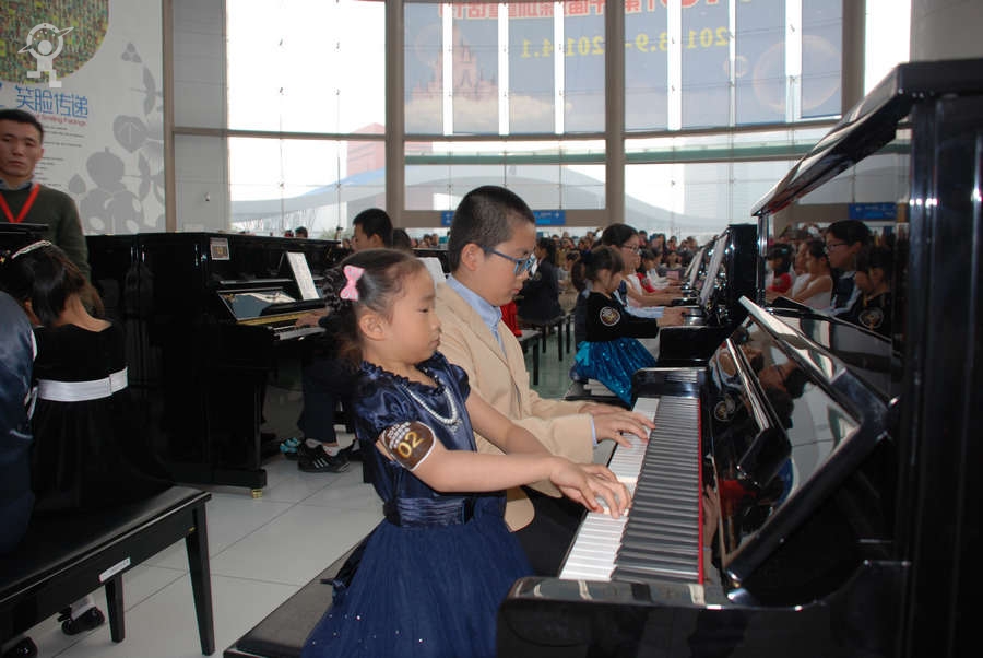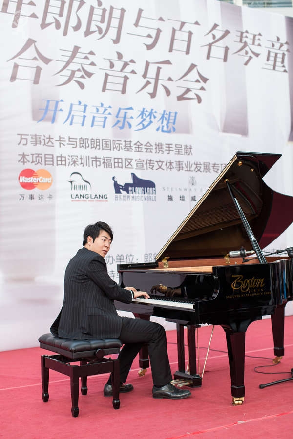 50架立式钢琴、1架施坦威三角钢琴以及100名琴童,在深圳再次以庞大的钢琴阵容出现在市少年宫水晶石大厅。当天下午2点,琴童们在老师的指导下进行彩排和练习;4点全球著名钢琴家郎朗来到现场,便立刻穿梭在这庞大钢琴阵容中,耐心地为兴奋的孩子们进行指导,回答孩子们提出的问题,帮助孩子们克服学琴正碰到的困难。随后,演出正式开始,琴童们在郎朗引导的节奏下合奏演出,《军队进行曲》激昂的音符在郎朗与琴童们的指尖抑扬顿挫地跳跃,全场响起震撼人心的旋律,如波涛汹涌,令全场沸腾。