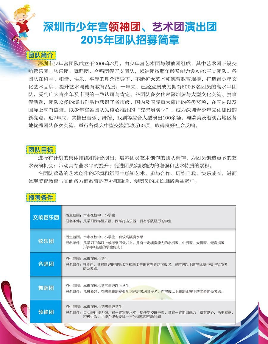 深圳市少年宫2015年艺术团、领袖团考核安排