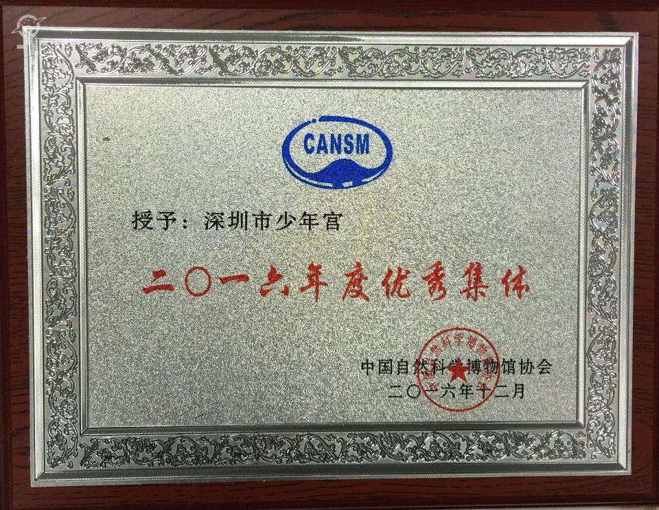 深圳市少年宫荣获“中国自然科学博物馆协会2016年度优秀集体”称号
