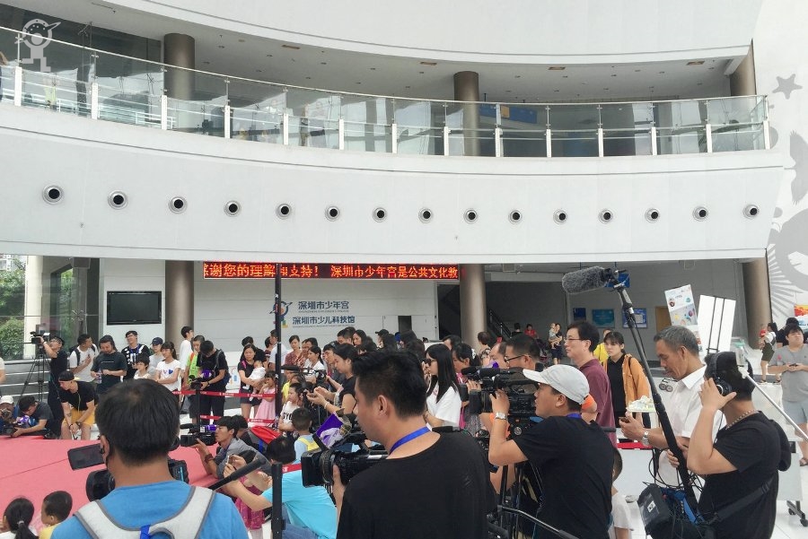 8月17日,由中央电视台主办、央视少儿频道承办的《哎哟,没想到!——2017全国中小学生创意大赛》之“创造力户外测试挑战赛”环节在深圳市少年宫水晶石大厅举行。央视此次派出了13个机位、40名工作人员的强大摄制阵容团队。