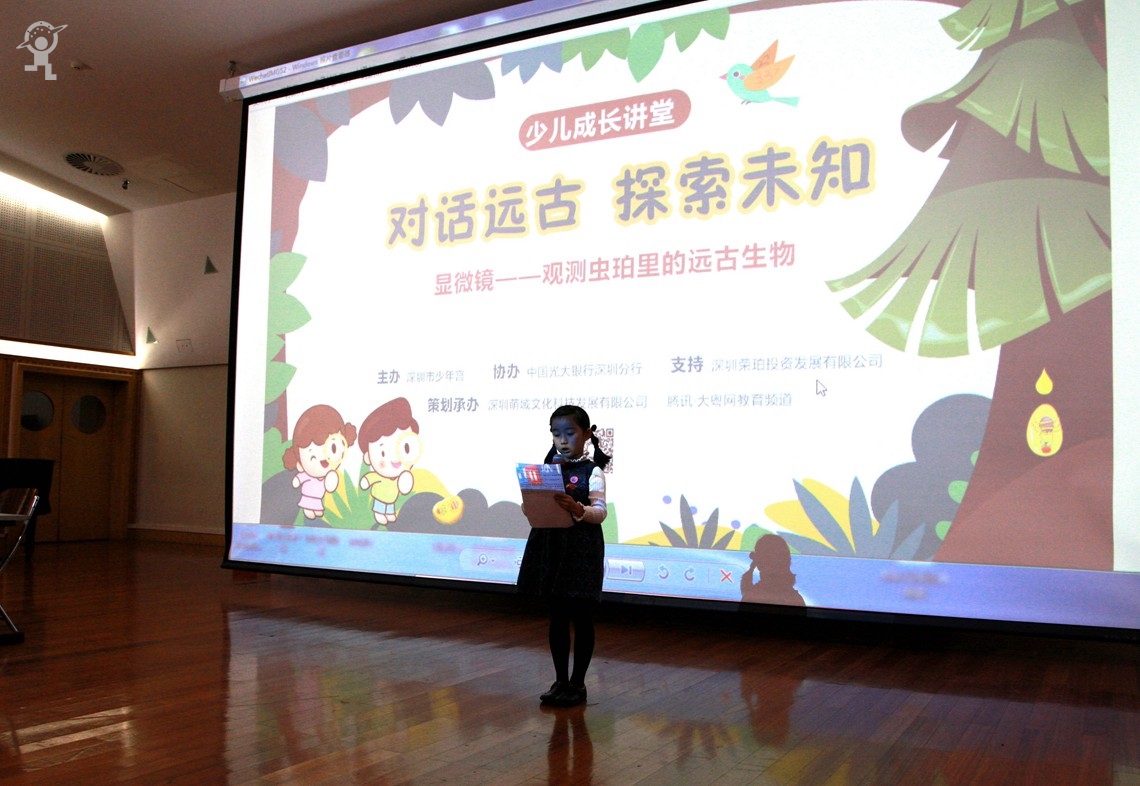 活动在7岁小朋友张恩希声情并茂的《琥珀》课文朗诵中拉开序幕。讲座嘉宾虫珀资深研究者古崎女士,通过图文并茂的童话故事形式,向现场的百位少儿及家长们,生动有趣地讲述了两只小虫子如何变成琥珀的经过,并结合动画片和巧妙问答的方式,加深了少年儿童们对虫珀形成的年代时期特征、生物种类、地理环境等科普知识记忆。