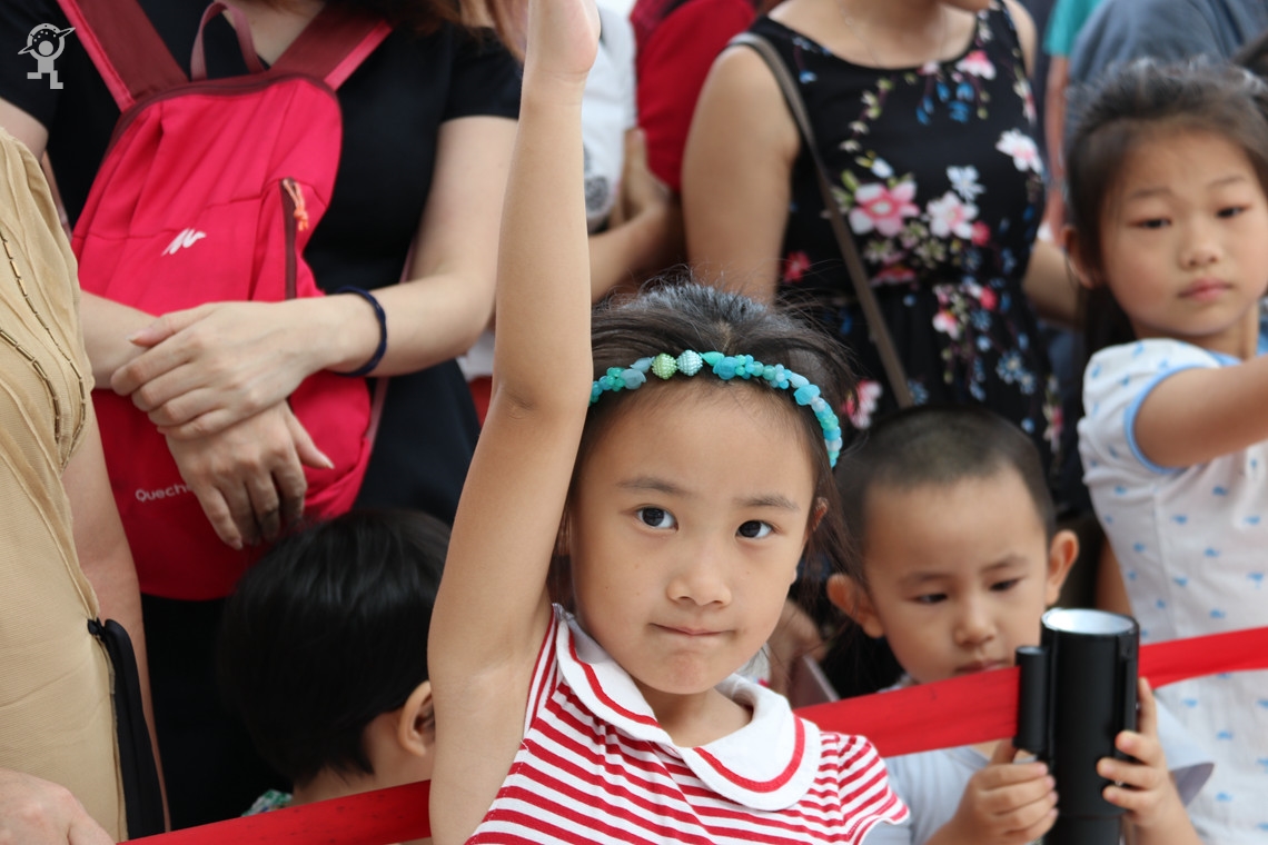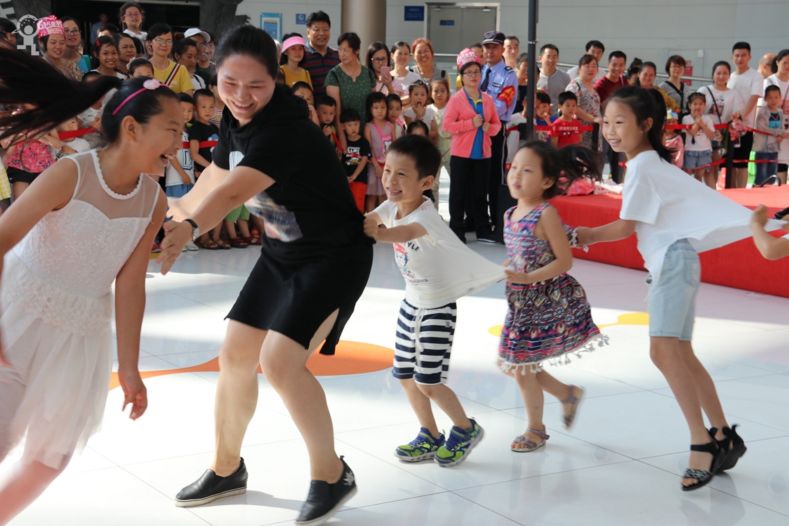 孩子们争先恐后、饶有兴致的举起小手期待着主持人姐姐的目光