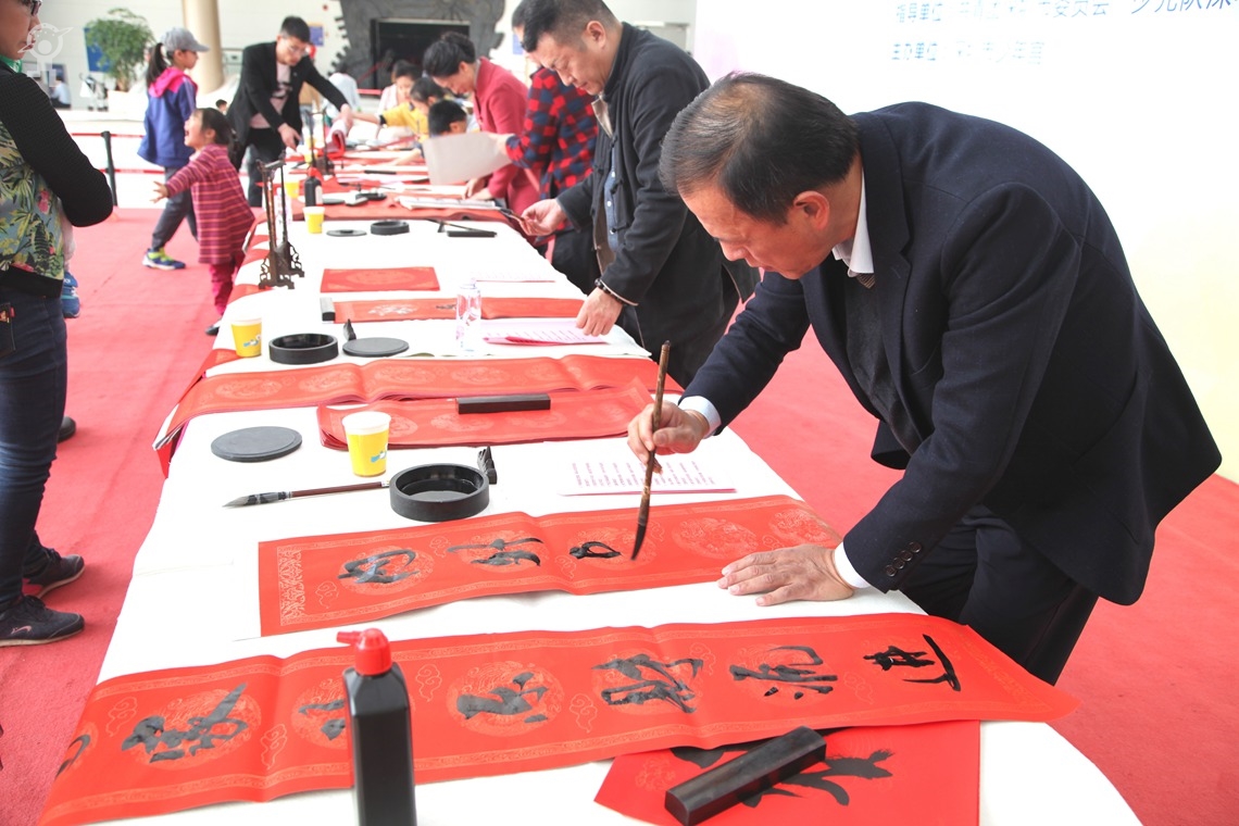 1月23日下午,深圳市少年宫水晶石大厅里喜气洋洋、热闹非凡,2019“深圳是我家,挥春送祝福”少年宫送春联公益活动在这里举行,来自市书画协会的书法家及少年宫的老师们,一起现场泼墨挥毫,为市民朋友免费书写春联献上祝福。