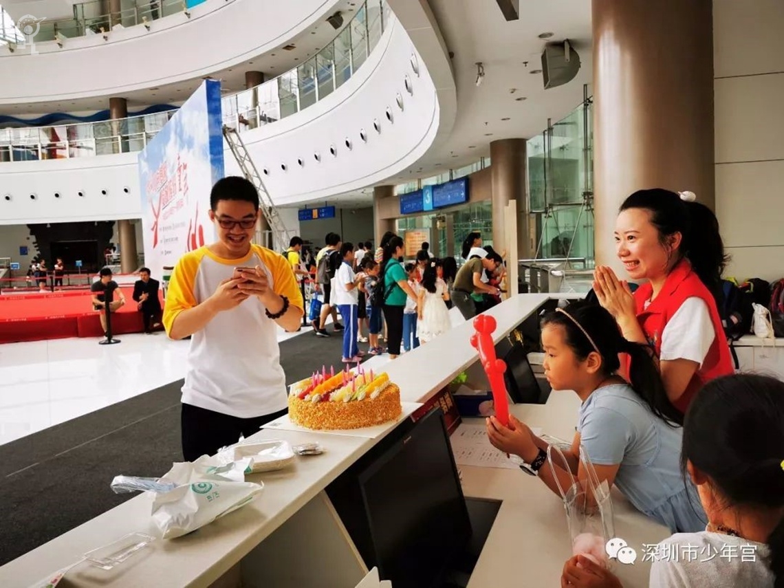这位现实版的暖心大白,叫小毅,今年16岁,现为某教育机构助教。今天一早,他提着一个大大的生日蛋糕来为少年宫庆生。他说,他是少年宫的粉丝和常客,他是在少年宫长大的,感谢少年宫给予他美好的童年回忆,今天是少年宫15周岁生日,他祝福少年宫生日快乐。