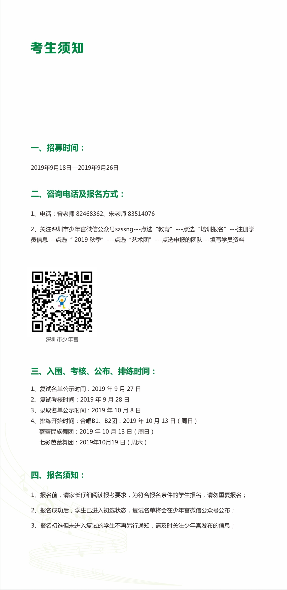 少年宫艺术团2019秋季招募考试录取通知(含录取名单)