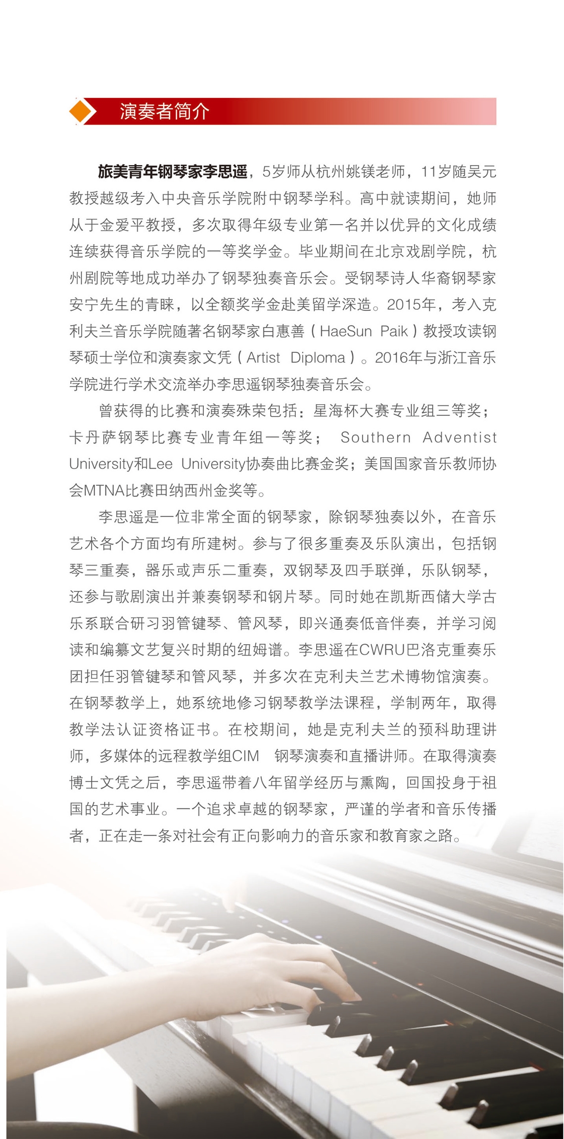 演出内容:“中华情·赤子心——献礼中华人民共和国成立七十周年”青年钢琴家沈璐师生中国作品专场音乐会
