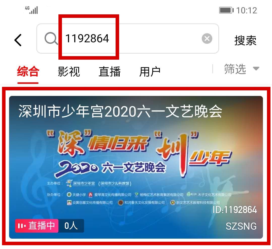 搜索:打开西瓜视频手机APP或登录www.ixigua.com网站,在搜索栏输入直播房间号1192864,选择六一文艺晚会直播链接点击进入观看。