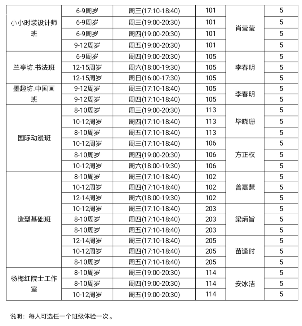 6.美术类体验课程安排