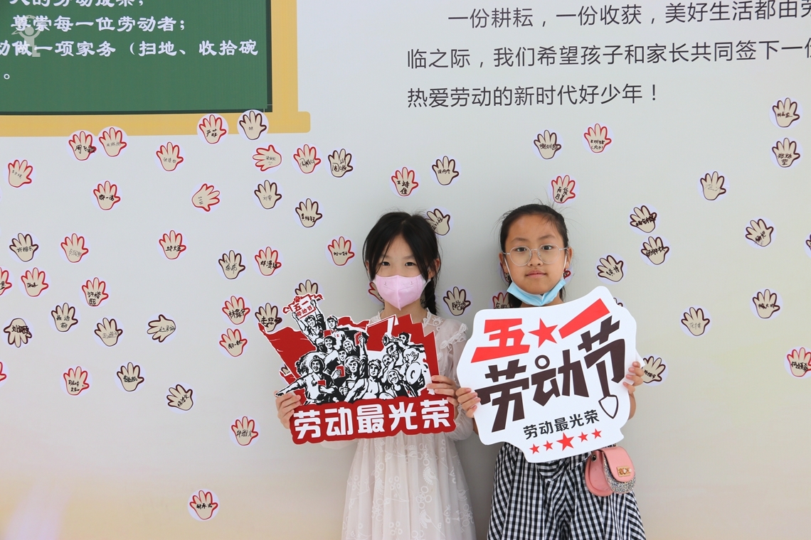 从小爱劳动展板合影