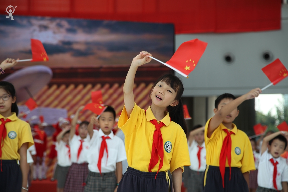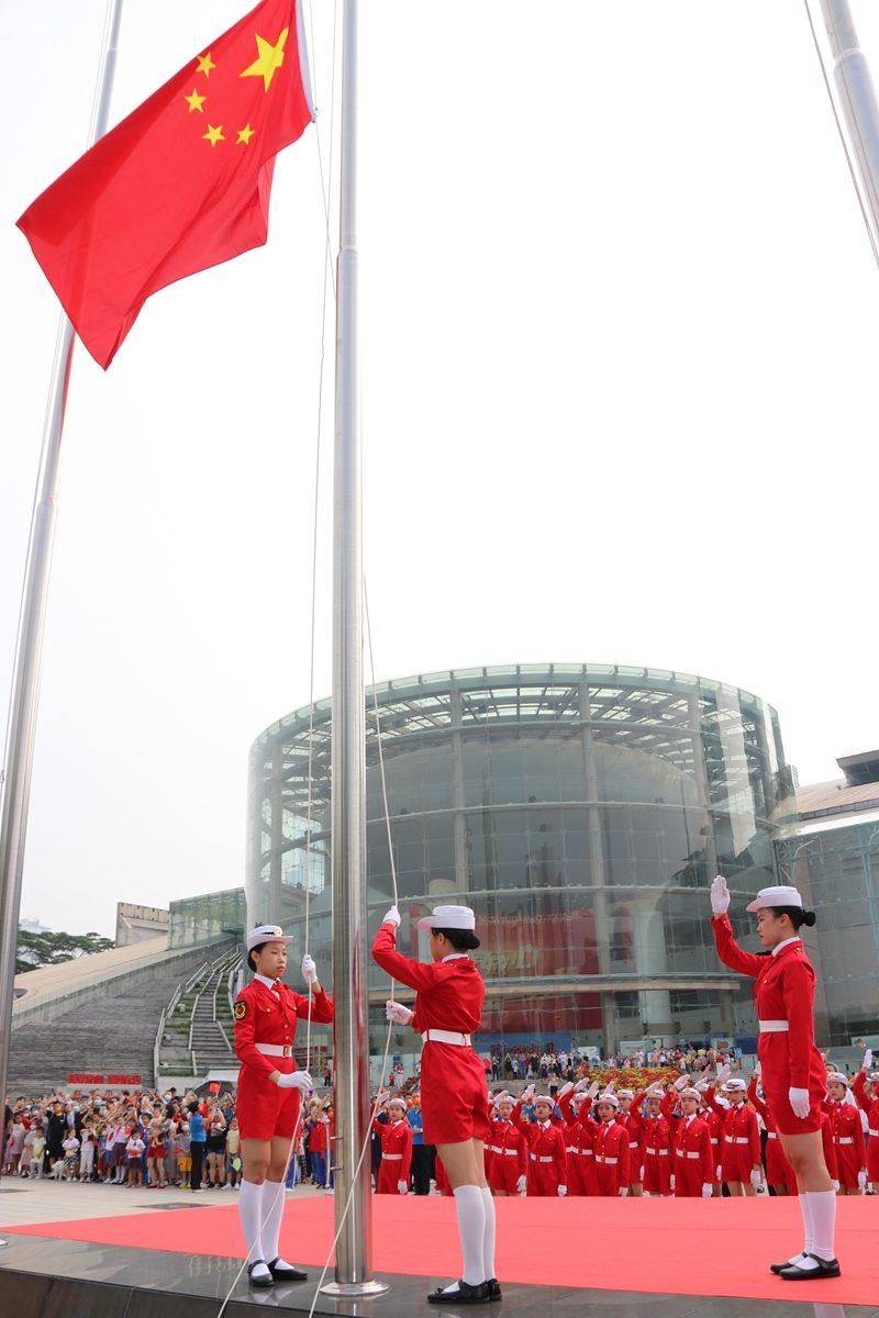 热爱祖国,是湾区青少年,在少年宫广场同升一面五星红旗的赤子情深;