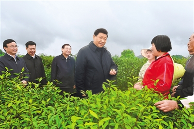 4月20日至23日,中共中央总书记、国家主席、中央军委主席习近平在陕西考察。这是4月21日,习近平在安康市平利县老县镇蒋家坪村女娲凤凰茶业现代示范园区,同茶农们亲切交谈。 |