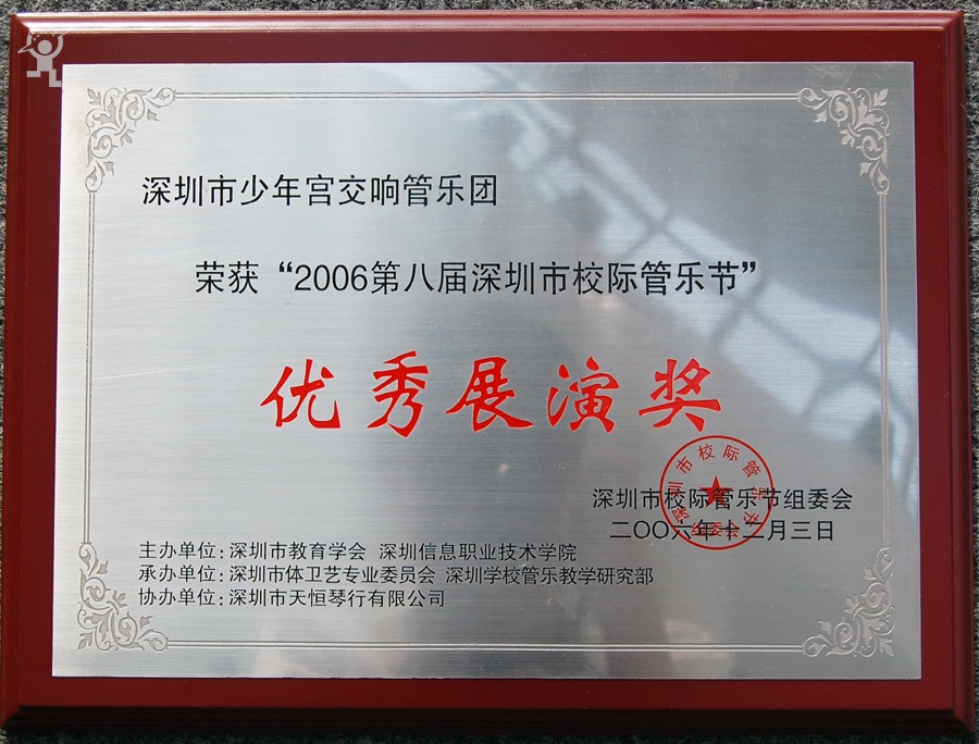 2006年12月管乐团荣获第八届深圳市校际管乐节优秀展演奖